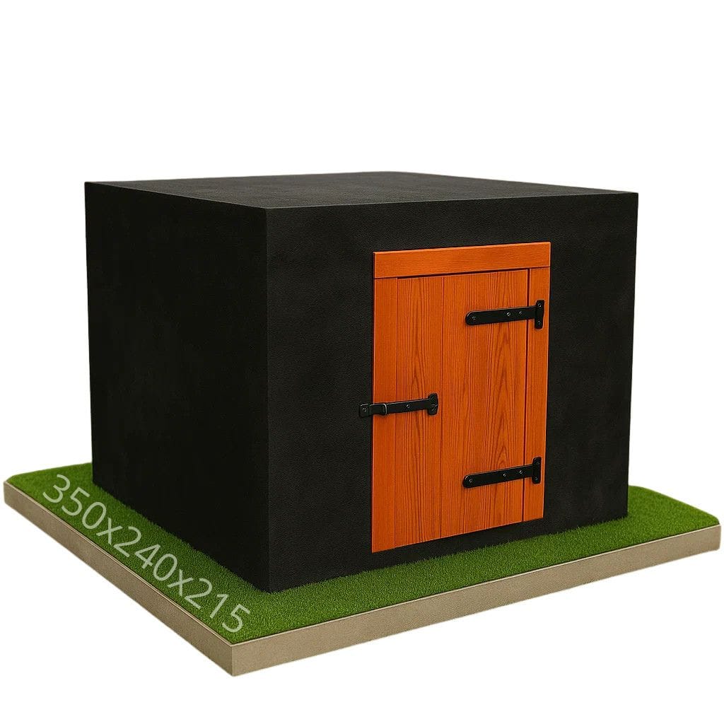 Model 350 × 240 × 215 cm ze sklepieniem płaskim zapewnia znacznie większą przestrzeń użytkową niż wersje mniejsze, pozostając jednocześnie niezwykle praktycznym i estetycznym elementem ogrodu. Płaska płyta górna umożliwia harmonijne wkomponowanie konstrukcji w teren, np. pod trawnik czy rabaty. Trwała konstrukcja z wysokiej jakości betonu, mocne zbrojenie i skuteczna hydroizolacja zapewniają wieloletnie użytkowanie bez ryzyka uszkodzeń — idealna inwestycja dla wymagających użytkowników.